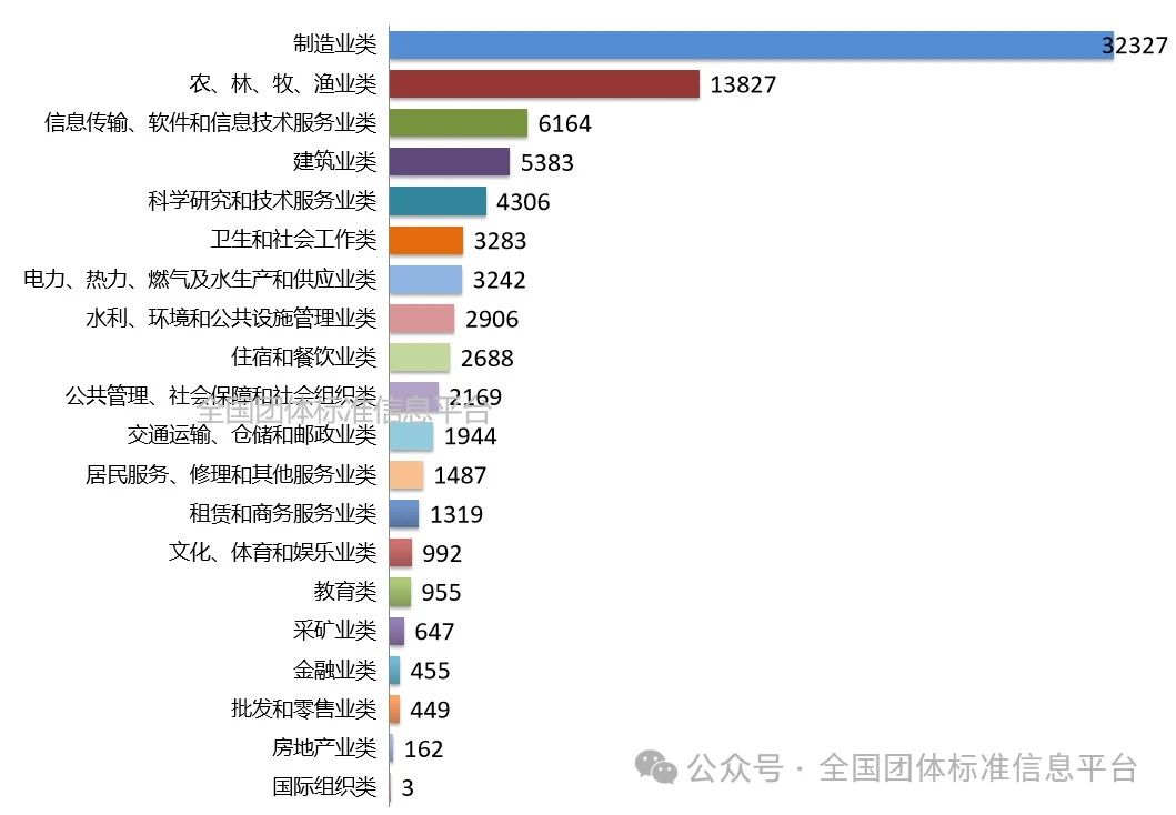 截至2024年6月30日,從國(guó)民經(jīng)濟(jì)行業(yè)劃分來(lái)看,社會(huì)團(tuán)體公布團(tuán)體標(biāo)準(zhǔn)涵蓋了全部20個(gè)國(guó)民經(jīng)濟(jì)行業(yè)分類,其中團(tuán)體標(biāo)準(zhǔn)數(shù)量最多的為制造業(yè)類,共32327項(xiàng),占團(tuán)體標(biāo)準(zhǔn)總數(shù)的38.16%,其次是農(nóng)、林、牧、漁業(yè)類,信息傳輸、軟件和信息技術(shù)服務(wù)業(yè)類等行業(yè)。