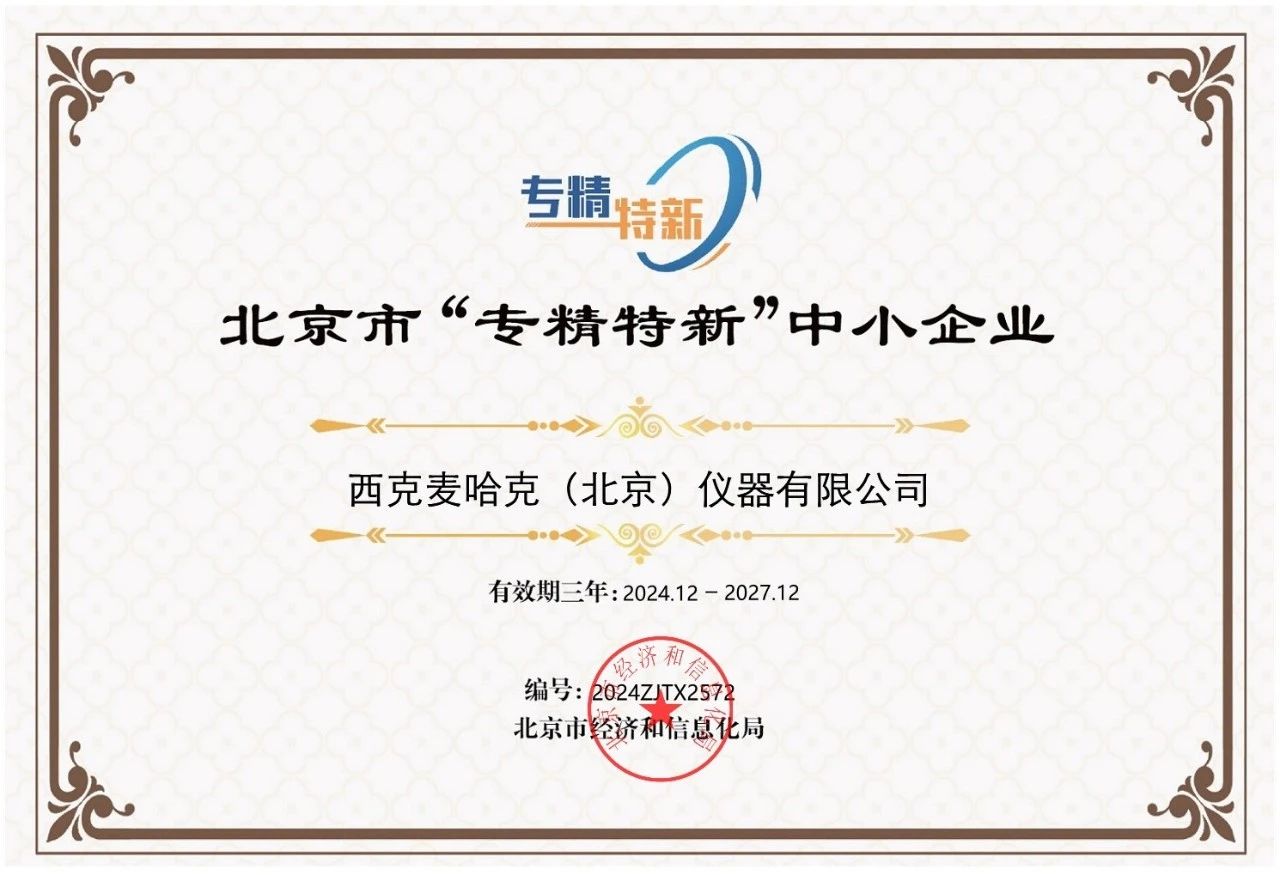近日,北京市經(jīng)濟和信息化局發(fā)布2024年度第三季度專精特新中小企業(yè)名單。西克麥哈克(北京)儀器有限公司憑借領(lǐng)先的技術(shù)能力,豐富的應(yīng)用經(jīng)驗與不懈的創(chuàng)新精神獲評北京市“專精特新”中小企業(yè)。