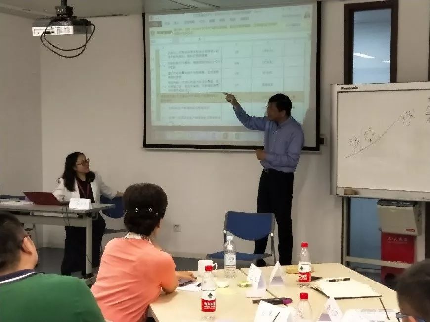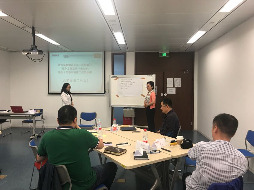 第二次課程在輕松熱烈的氛圍中開始,佳能高級講師首先簡單回顧了第一次課程的要點,之后采取輕松愉快的“星座”分組模式,帶領學員逐個分享與實際工作相結合的“全體像分析”及“APS流程細化”作業;在學員分享過程中,積極帶動各小組成員共同分析和探討,分析所授“手法”掌握的程度及問題,總結其中優秀的做法,探討問題的其他解決方案;通過分享及參與的方法再次引導大家理解和鞏固目標管理的三要素、3M原則及全體像的應用方法等手法。