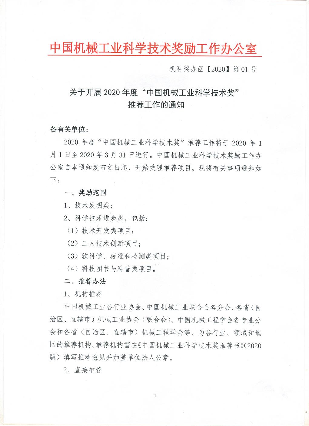附件:關于開展中國機械工業科學技術獎推薦工作的通知