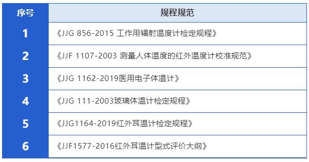 升級后的體溫計(jì)檢定方案適用于以下規(guī)程規(guī)范: