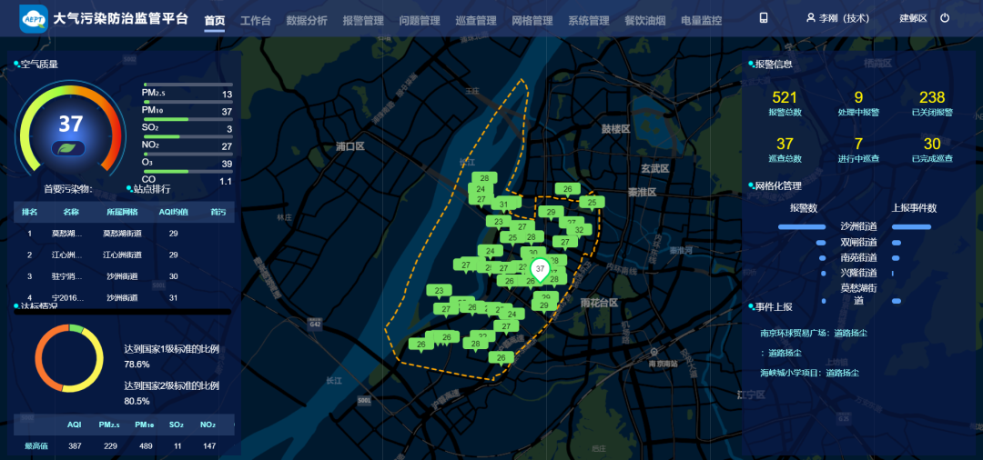 2019年12月京儀集團所屬企業(yè)京儀大氣成功中標“南京市建鄴區(qū)大氣污染防治科學精準綜合調控整體解決方案”項目。一年以來,項目組現(xiàn)場調研,制定科學解決方案,通過加強數(shù)據深度分析,從監(jiān)測、分析、溯源入手,監(jiān)管與治理相結合的服務模式,解決區(qū)域污染管控難題,提高“人防”+“技防”作用支撐,持續(xù)改善區(qū)域生態(tài)環(huán)境質量。