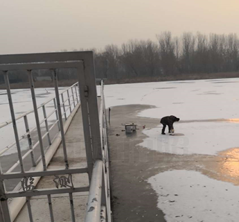 河北省承德市郭家屯、李臺站運維人員黃可新、高凌立對水站進行巡檢時,發現采水口附近堆積了大量樹枝雜物,他們毫不猶豫,穿著水褲下入河水,刨開冰雪清理雜物。雖然腳下的河水冰冷,但是他們的熱情高漲,保證數據“真、準、全”,他們認為一切都是值得的。