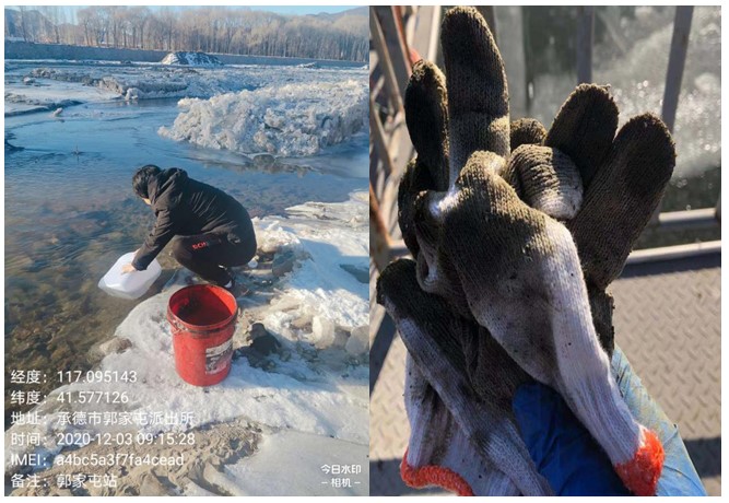 面對湍急的河水、復雜的冰面、崎嶇的道路,運維人員王小偉仔細勘察地形后,堅毅的在冰冷河水中采樣,手被凍傷,他無怨無悔,又投身于繁忙的運維工作中。