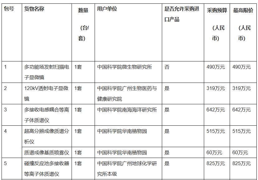 7月26日,中國政府采購網(wǎng)發(fā)布了中國科學(xué)院2023年儀器設(shè)備部門集中采購項目招標(biāo)公告,包括電子顯微鏡、激光共聚焦顯微鏡類、質(zhì)譜儀類、核磁共振波譜儀類等共28包。預(yù)算金額為13,350萬元。該項目的潛在投標(biāo)人應(yīng)在北京市海淀區(qū)丹棱街1號互聯(lián)網(wǎng)金融中心20層獲取招標(biāo)文件,并于2023年08月16日 14點00分(北京時間)前遞交投標(biāo)文件。