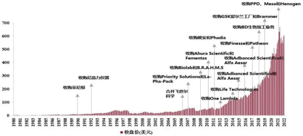 ▲Thermo Fisher股價與重要并購事件,資料來源:Wind、招商銀行研究院