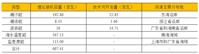 表1:海洋能資源類型