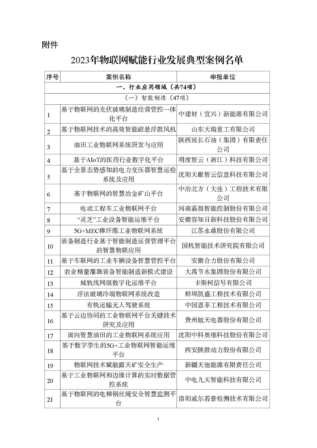附件:2023年物聯(lián)網(wǎng)賦能行業(yè)發(fā)展典型案例名單