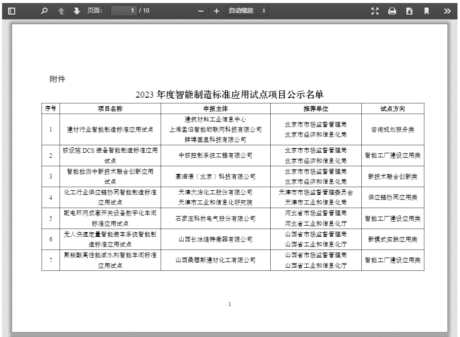附件:2023年度智能制造標準應用試點項目公示名單
