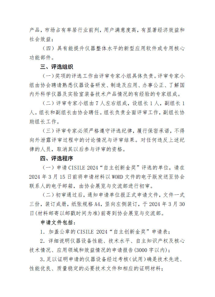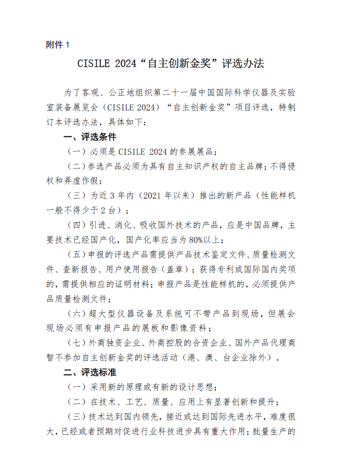 1.CISILE 2024“自主創新金獎”通知原文及評選辦法