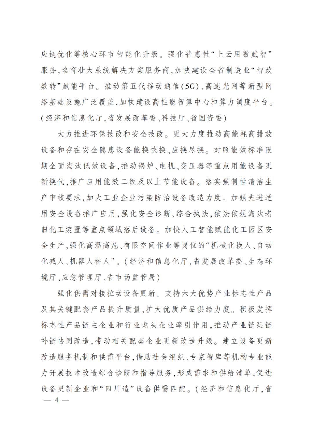 四川省人民政府關于印發《四川省推動大規模設備更新和消費品以舊換新實施方案》的通知
