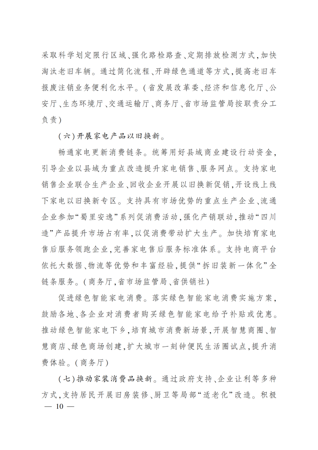 5月11日四川省人民政府網站發布關于印發《四川省推動大規模設備更新和消費品以舊換新實施方案》的通知。