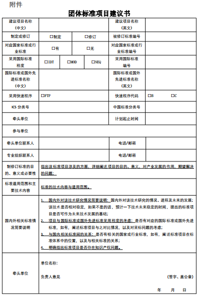 附件:團體標(biāo)準(zhǔn)項目建議書