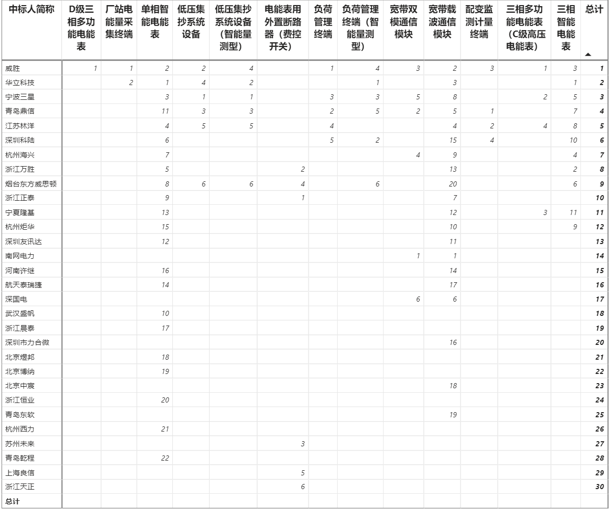 總金額14.29億元,20家企業(yè)實現(xiàn)中標;南網(wǎng)科技、威勝、鼎信、深國電、三星、海興中標2包;