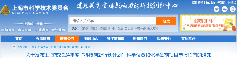 關(guān)于發(fā)布上海市2024年度“科技創(chuàng)新行動計劃”科學(xué)儀器和化學(xué)試劑項目申報指南的通知滬科指南
