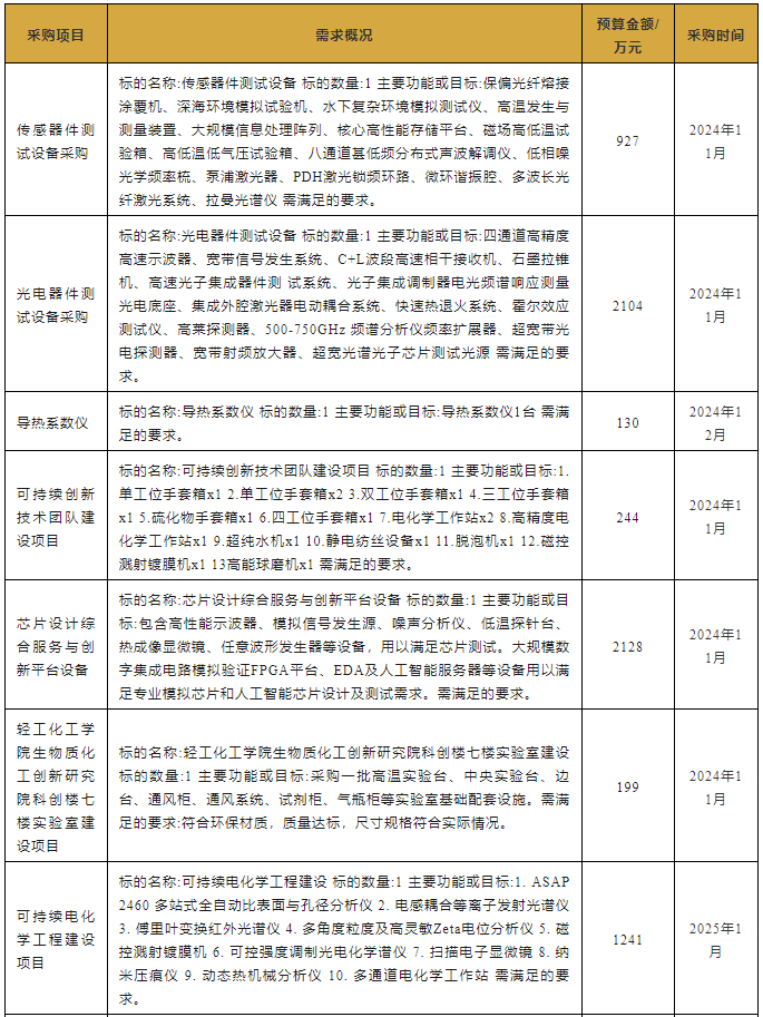 近日,廣東工業大學發布18項儀器設備采購意向,預算總額達8457萬元,涉及電感耦合等離子發射光譜儀、八通道甚低頻分布式聲波解調儀、低相噪光學頻率梳、電子順磁共振波譜儀、多角度粒度及高靈敏Zeta電位分析儀、拉曼光譜儀等,預計采購時間為2024年11月~2025年1月。