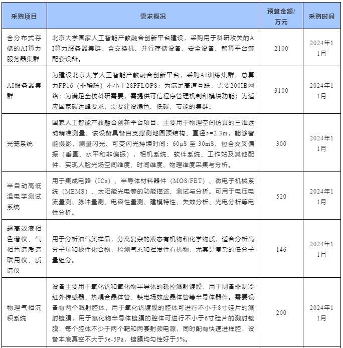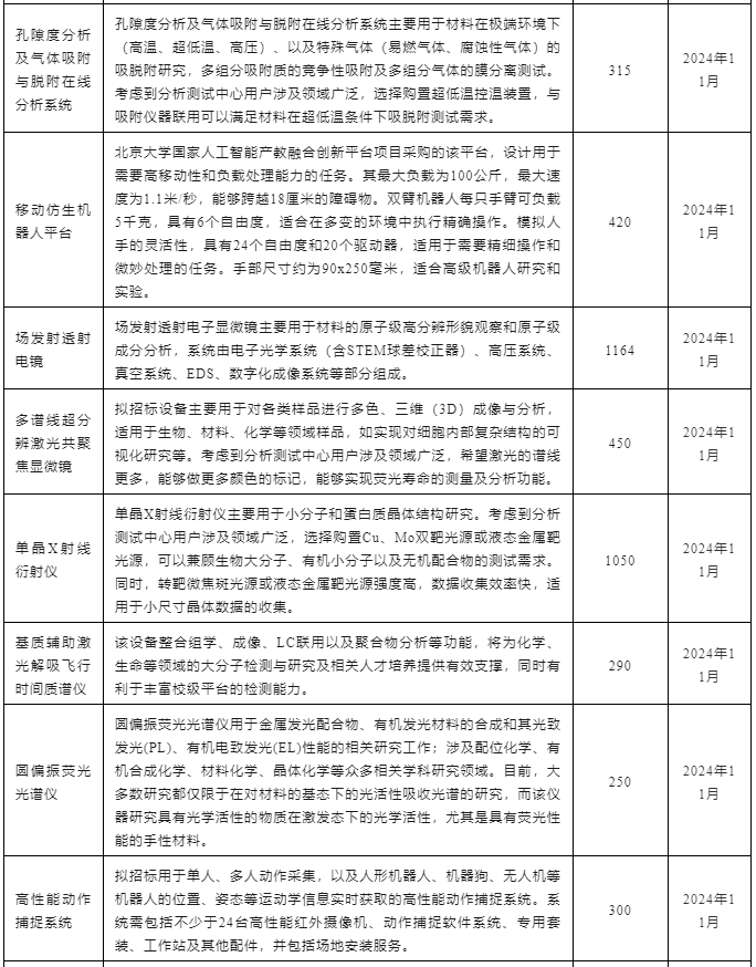 北京大學(xué)2024年11月儀器設(shè)備采購(gòu)意向匯總表