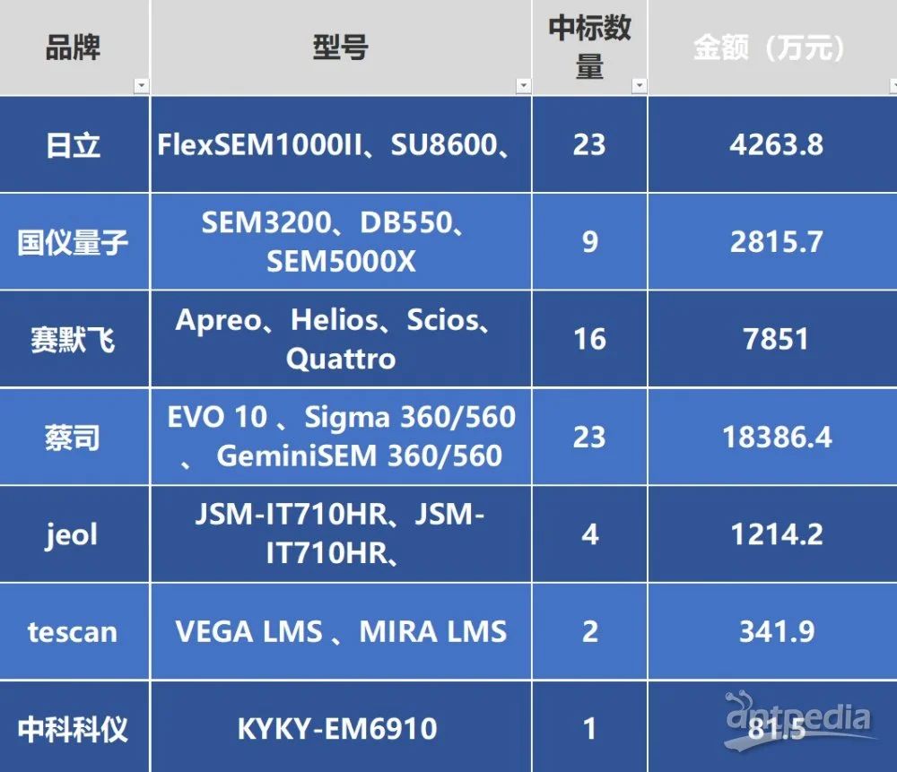 表1. 2024年度 掃描電子顯微鏡 中標(biāo)廠商統(tǒng)計(jì)表