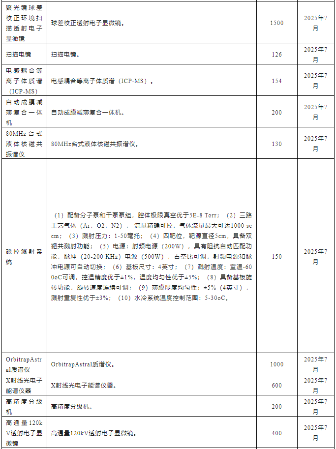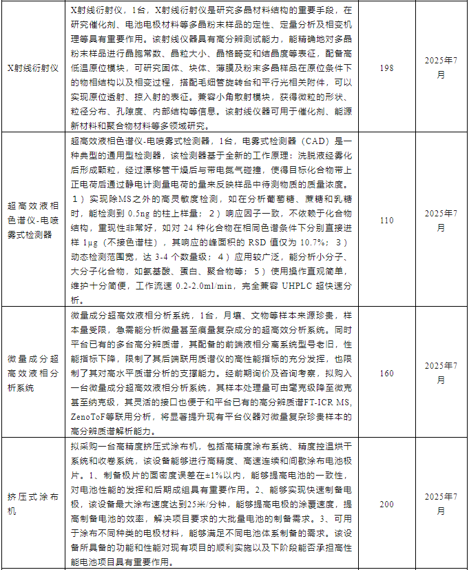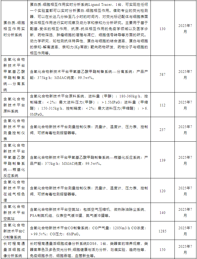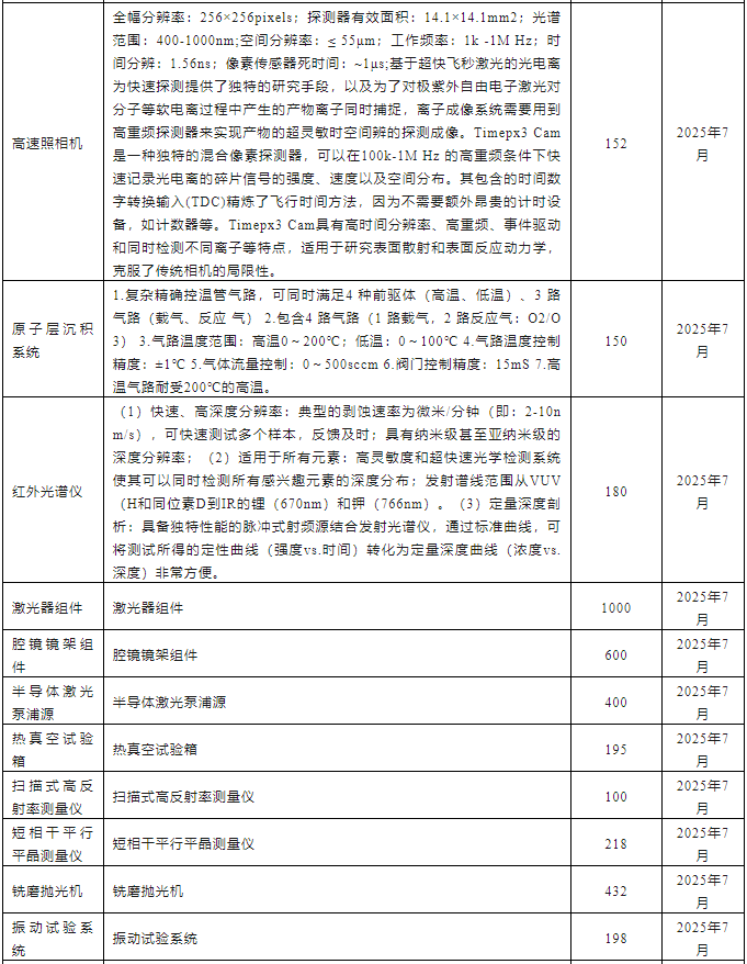中國科學院大連化學物理研究所2025年7月儀器設備采購意向匯總表