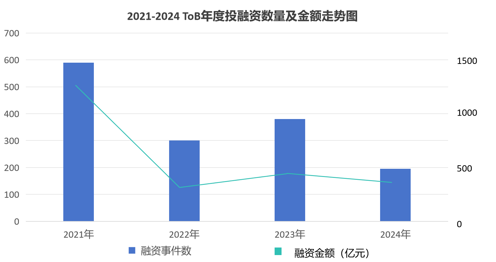 縱觀整個ToB軟件市場,技術支撐、垂直行業、工業軟件這三大類連續兩年保持為融資核心領域的TOP3。其中,2021年是近四年里的“融資高峰年”,隨后幾年進入調整期,2022年間無論融資數量還是金額大幅下滑,這與宏觀經濟環境、資本市場收緊及行業泡沫清理密切相關;2023年的回升顯示行業逐步走向理性,優質項目開始重新受到資本青睞;2024年融資總額未見顯著復蘇,但行業資金更加聚焦于核心領域和頭部企業。