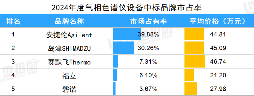 設(shè)備品牌方面,金額市占率較高的品牌有安捷倫Agilent、島津Shimadzu、賽默飛Thermo,市占分別為39.88%、30.26%、7.31%。前3品牌合計占比達(dá)77%,品牌集中度非常高。