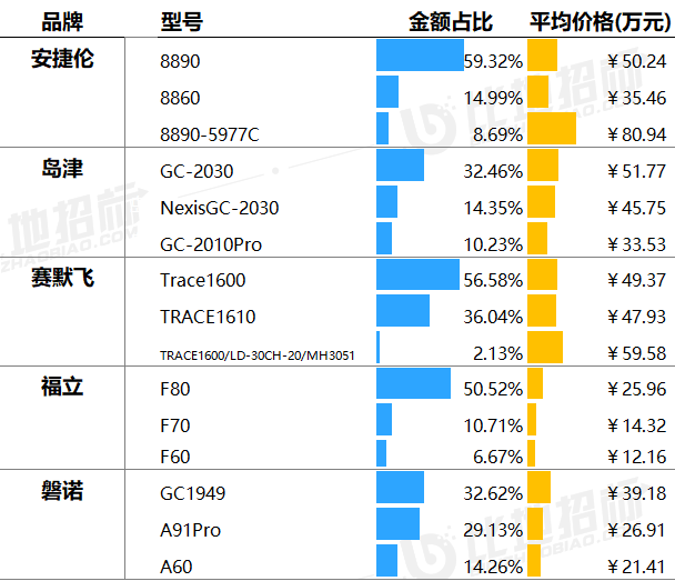 主要品牌型號金額占比&價格