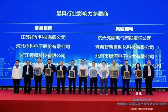 展會(huì)規(guī)??涨?,參會(huì)人數(shù)400余人,近200家參展企業(yè)展示了傳感器、電容器、開關(guān)與繼電器等產(chǎn)品。采用 “以會(huì)帶展、以展促會(huì)” 模式,打通電工儀器儀表行業(yè)全產(chǎn)業(yè)鏈條,推動(dòng)各環(huán)節(jié)緊密銜接與協(xié)同發(fā)展。今年恰逢第50屆行業(yè)大會(huì),為彰顯會(huì)議的特殊意義和重要貢獻(xiàn),特別舉辦了“最具行業(yè)影響力展商”評選活動(dòng),評選出貴德集團(tuán)等十家行業(yè)內(nèi)最具代表性的品牌企業(yè)。工業(yè)和信息化部裝備工業(yè)一司原一級巡視員、中國儀器儀表行業(yè)協(xié)會(huì)九屆理事會(huì)副理事長候選人(駐會(huì))苗長興,中國儀器儀表行業(yè)協(xié)會(huì)副秘書長程紅,以及哈爾濱電工儀表研究所有限公司黨委書記、董事長趙斌為這10家最具影響力的參展商隆重授牌。