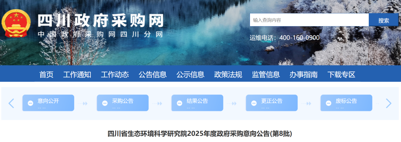 為便于供應商及時了解政府采購信息,根據《財政部關于開展政府采購意向公開工作的通知》(財庫〔2020〕10號)等有關規定,現將四川省生態環境科學研究院2025年度(第8批)采購意向公開如下: