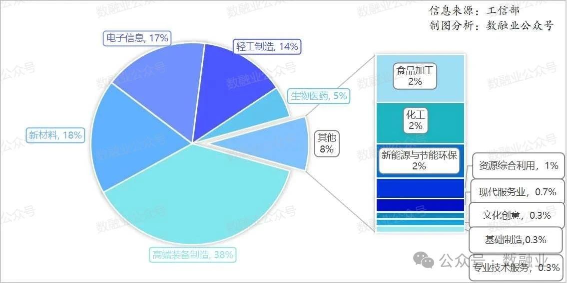 輕工制造(如紡織、家具等)和生物醫(yī)藥分別占比14%、5%,滿足民生與健康需求,切合健康中國(guó)戰(zhàn)略。新能源與節(jié)能環(huán)保、化工、基礎(chǔ)制造等占比相對(duì)較低,合計(jì)占比 8% 。