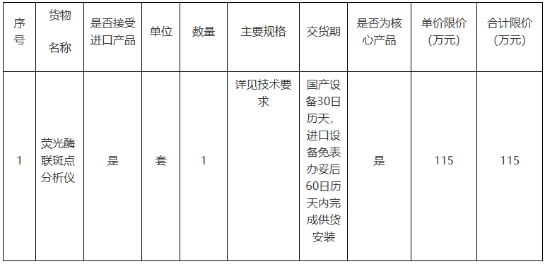 華中農(nóng)業(yè)大學(xué)微生物資源庫建設(shè)項目第七批(熒光酶聯(lián)斑點分析儀) 招標(biāo)項目的潛在投標(biāo)人應(yīng)在武漢市洪山區(qū)徐東大街徐東嘉園B座2801獲取招標(biāo)文件,并于2025年07月30日 09點30分(北京時間)前遞交投標(biāo)文件。
