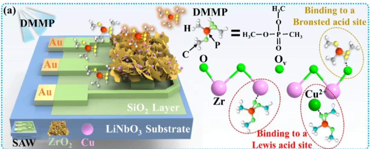 圖|超高頻SAW DMMP氣體傳感器結構和傳感原理示意圖