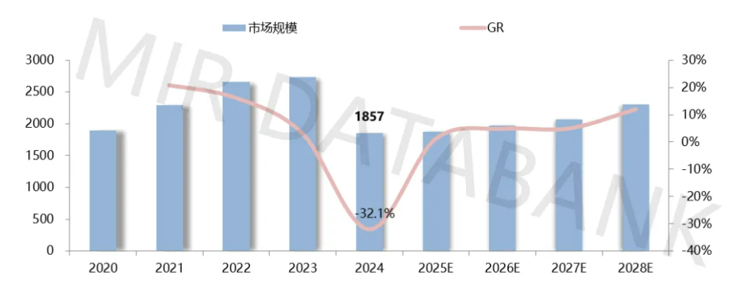 2020-2028年中國大型PLC整體市場規模(單位:百萬元)