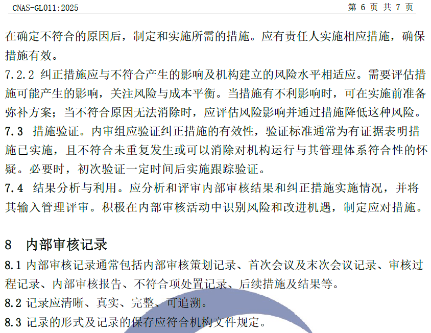 ——更改了內(nèi)部審核記錄的技術(shù)內(nèi)容(見8,GL011:2018的9.1、9.2、9.4);