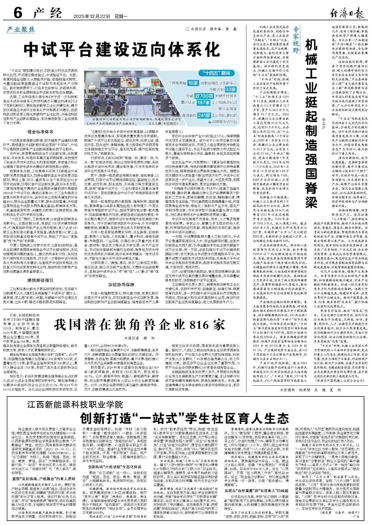 12月22日,《經(jīng)濟日報》刊發(fā)中國機械工業(yè)聯(lián)合會黨委書記、會長徐念沙署名文章《機械工業(yè)挺起制造強國脊梁》。全文如下: