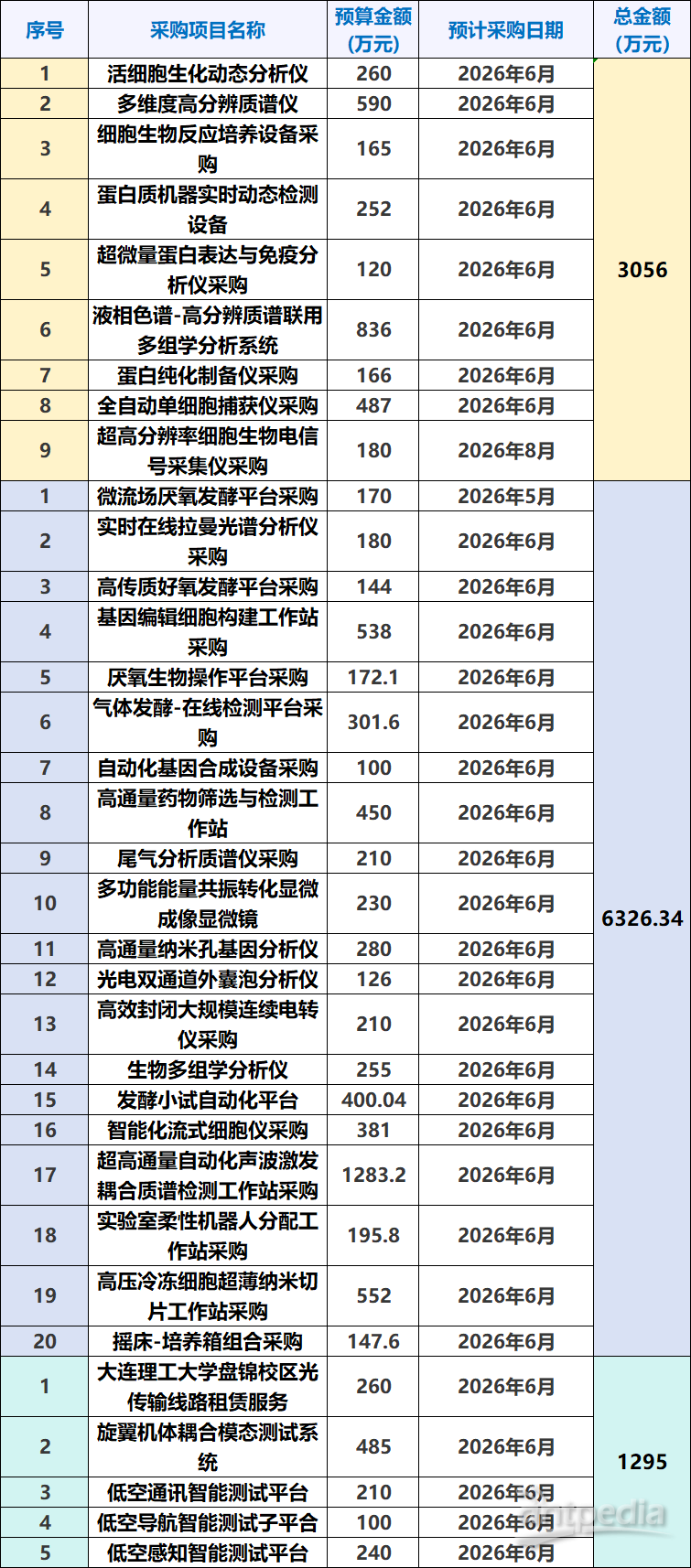 據(jù)中國政府采購網(wǎng)近日消息,繼公布6326.34萬元采購意向后,大連理工大學再發(fā)布多項2026年政府采購意向,采購預算金額分別為3056萬元、1295萬元,擬采購設備包含液相色譜-高分辨質譜聯(lián)用多組學分析系統(tǒng)、全自動單細胞捕獲儀、多維度高分辨質譜儀等大型精密儀器。
